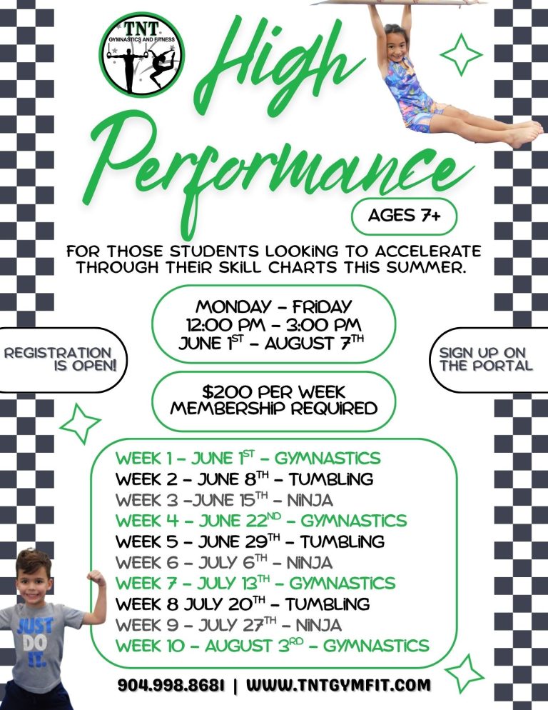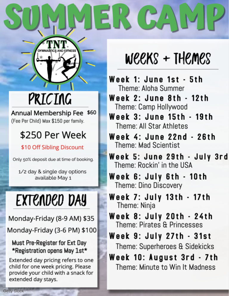 Our camp combines exciting gymnastics instruction with opportunities for socializing, creative activities, and confidence-building fun. Whether your child is new to gymnastics or already loves to tumble and flip, TNT provides a positive space where every camper can grow, make friends, and create unforgettable summer memories.